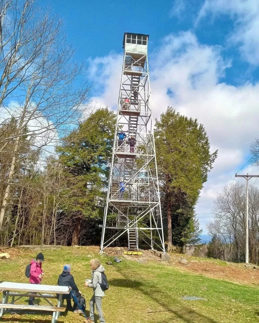 Grafton Lakes State Park, hikers enjoying views from Dickinson Fire Tower, pic by B Lampman